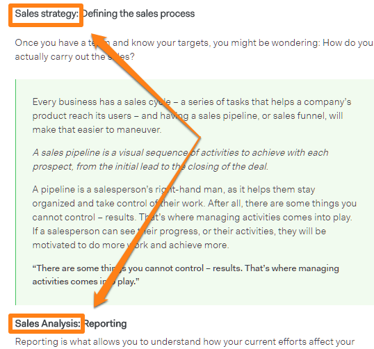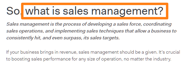 3. Removed “sales management” from H2 headings