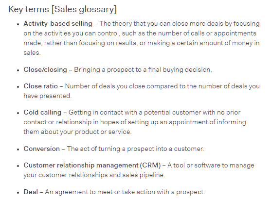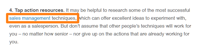 We diversified this list by adding links to related terms like “sales manager,” “sales process,” etc.