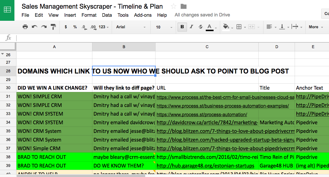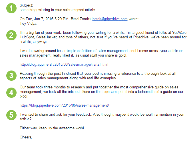 In our case, guest blogging was already a part of our long-term content marketing strategy. The only thing we changed was adding links to our sales management post within guest posts.