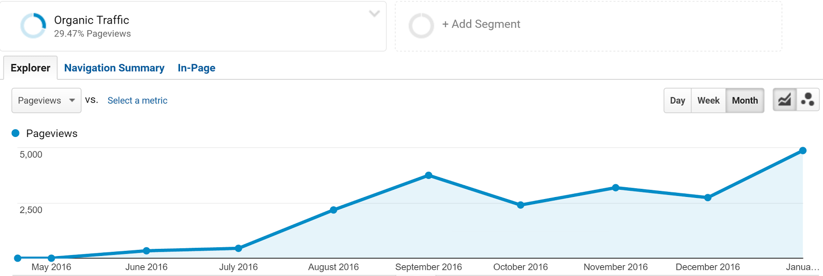 Our organic pageviews increased from nearly 0 to over 5,000 in just over 8 months.