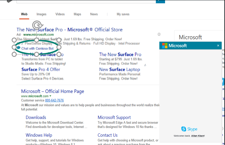 - You can engage with local businesses such as restaurants via the Bing Business bot that shows up as part of the local listings: