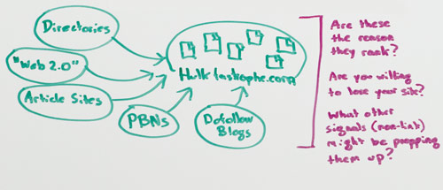 You look at this stuff and you go, "What is this junk? It's terrible. Why isn't Google penalizing them for this?" The answer, the right way to think about this and to come at this is: Are these really the reason that they rank? I think we need to ask ourselves that question.