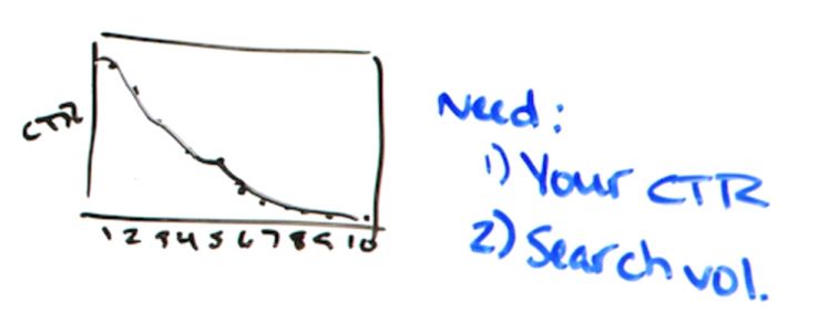 By knowing that and combining that with the search volume of a keyword or a phrase that you want to go after, you can multiply the two and just say, "Hey, here's the expected traffic we will get if you will let me work on improving our rank position from 9 to 2 or 1" or whatever that is. So there are ways to estimate and get close.