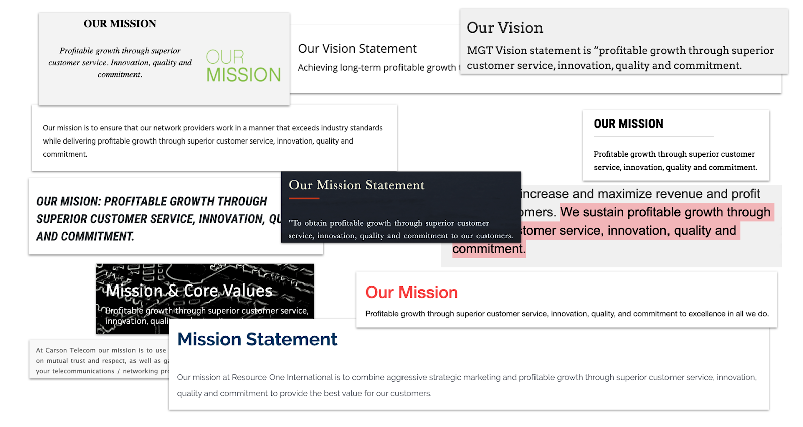 Often when we talk about a brand's competitive edge, we talk about mission and vision statements. But the sad truth is that many, many businesses are claiming competitive advantages in meaningless mission statements that aren't competitive advantages at all. Let’s look at an example: “Profitable growth through superior customer service, innovation, quality and commitment.”