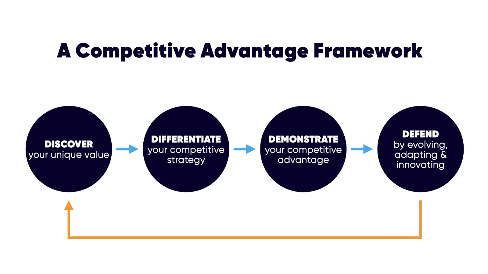 So you need to figure out where to evolve or re-invent to stay competitive. This is a handy little framework for finding, establishing, articulating and maintaining your competitive advantage. But note that this isn't purely linear -- once competitors encroach on your previous advantage you're at risk of losing it, so be sure to look ahead to what your next competitive advantage can be OR how you can elevate and defend the one you already have.