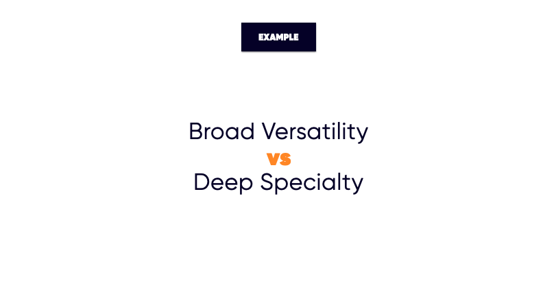 Another common challenge is trying to be a company or person who is both broad and versatile, while also being deeply specialized. This isn't absolutely impossible, but maintenance and upkeep becomes challenging over time. If your brand wants to be perceived as the most versatile brand that can adapt to anything or meet everyone's needs, it's difficult to also be the brand that is perceived as deeply specialized in a certain field.
