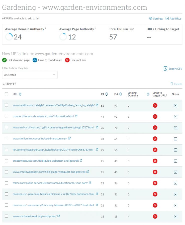 For example, we found CarolinaCountry.com had linked to multiple of the competitor sites and, as it turns out, would be a perfect publication to pitch for a story as part of a PR campaign for promoting the gardening site.