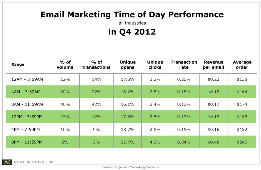 I recently found a chart on MarketingCharts.com (one of my favorite sites) that talked about fallacies surrounding email marketing according to Experian. Their way of setting up their analysis may help you as well: