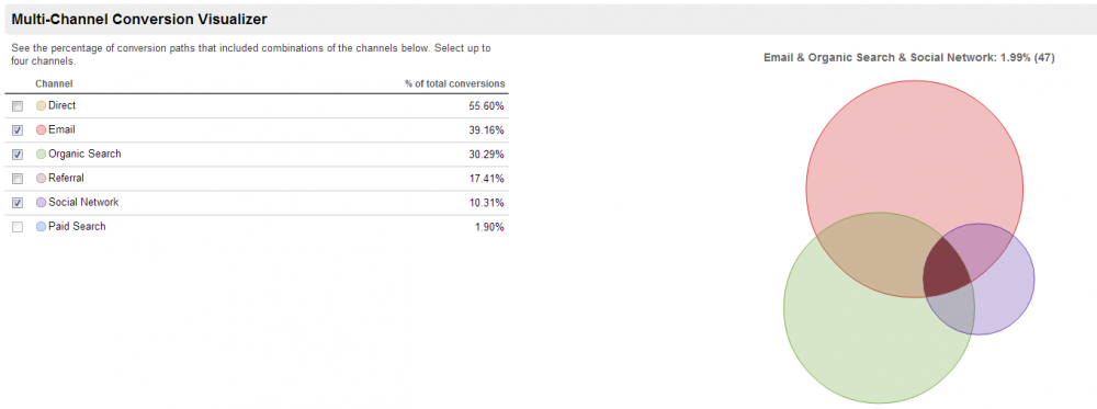 What if I told you that 39.16% of our conversions on the Distilled website (micro and macro conversions, including DistilledU, conferences, and lead gen forms) were touched by an email during the conversion process? What if I told you that this is more than either organic or social? Here's the proof: