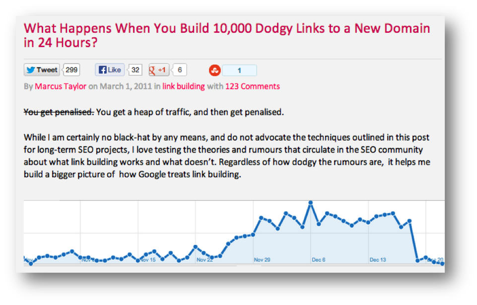 - What myth do the majority of your industry believe is true? Could you provide a compelling argument that the opposite is true? A few years ago, I wrote up an experiment called “What Happens When You Build 10,000 Dodgy Links in 24 Hours?” which ended up on Whiteboard Friday, The Guardian, HuffPo, Forbes, and a few others. I suspect it got the publicity it did because it was surprising and debunked a myth that many SEOs believed at the time.