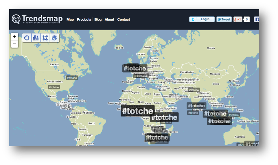 Use Trendsmap.com – find out what is trending on Twitter in your city (or in other major cities). This is great for agile content marketers due to the real time filtering of trends.