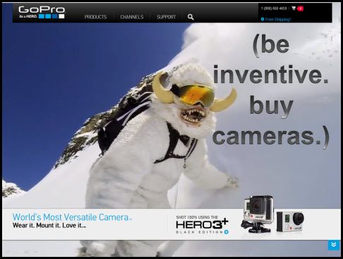 | GoPro: Be inventive, buy cameras. | Nike: Do sports, buy shoes. |