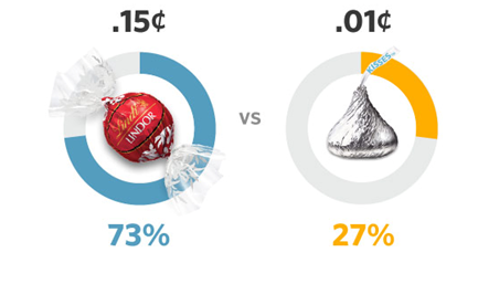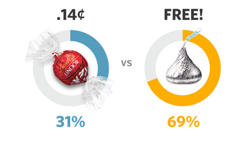 But then Dan tweaked the prices by reducing the Lindt to 14 cents and offering the Hershey's for free. This changed the results dramatically:
