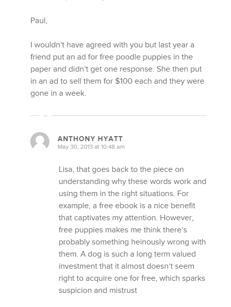 Gregory Ciotti, a marketing strategist at Help Scout, wrote an interesting article listing the five most persuasive words, with the word “free” being #2.