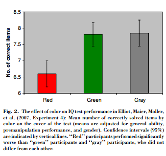Another joint study conducted by University of Rochester and University of Munich explored the effects of colors red, green, and grey on an IQ test. The test papers were identical except for the color of the cover. The results were as follows: