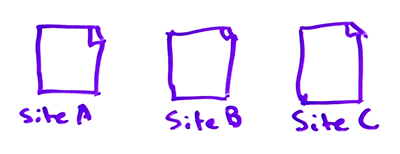 If you run multiple domains, for whatever reason, let's say you've got a set of domains and you would like the benefit of being able to publish a single piece of content, for whatever reason, across multiples of these domains that you own, but you know you don't want to deal with a duplicate content issue and you know you'd prefer for one of these domains to be the one receiving the ranking signals, cross-domain rel=canonical is your friend. You can tell Google that Site A and Site C should not get credit for this content, but Site B should get all the credit.