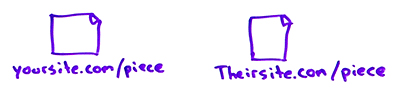 Next, let's say I am in the opposite situation. I'm the publisher. I see a piece of content that I love and I want to get that piece. So I might say, "Wow, that piece of content is terrific. It didn't do as well as I thought it would do. I bet if we put it on our site and broadcast it with our audience, it would do incredibly well. Let's reach out to the author of the piece and see if we can purchase or rent for a time period, say two years, for the next two years we want to put the cross-domain rel=canonical on your site and point it back to us and we want to host that content. After two years, you can have it back. You can own it again."