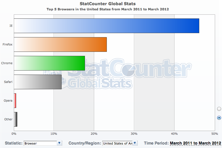 There are plenty of different web browsers on the market today (see chart below from StatCounter for current distributions), and web users have their own reasons for using one particular browser over another. So for web business owners, bloggers, web designers and developers, it’s now imperative that websites be designed so that they’re compatible across browsers – meaning that a website should look the same, no matter which browser internet users fire up to surf.