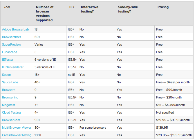 Out of this list, both the Adobe BrowserLab and Browsershots tools are quite popular and are commonly used by web designers to ensure their designs are compatible across browsers. Adobe’s BrowserLab tool can also be linked to Adobe Dreamweaver, making it even easier for designers who use this program to develop cross-compatible websites.