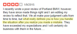 I couldn’t have said it better myself, and this edited review typifies for me the reasonableness I saw in case after case. Far from being the scary, irrational customers that business owners dread, it's clear that many people have the basic understanding that mistakes can happen… and can be rectified. I even saw people forgiving auto dealerships for damaging their cars, once things had been made right.