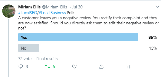 Respondents showed strong support for asking a customer who has been restored to happiness to edit their review. However, I would add a few provisos.