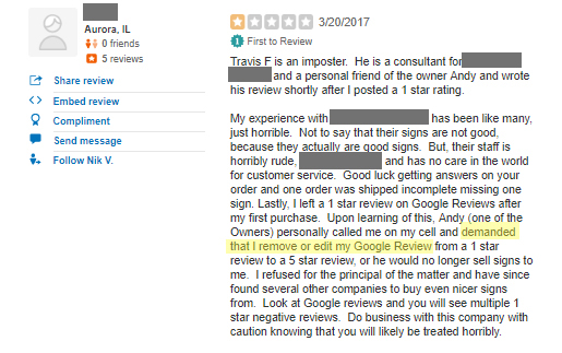 Suffice it to say, never demand an edited review, and certainly don’t use one as blackmail!