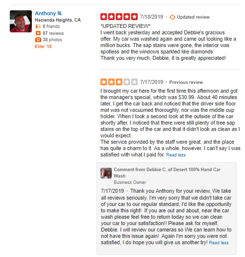 When a customer has initially misunderstood a policy or offering and the business in question takes the time to clarify things, fair-minded individuals can feel honor-bound to update their reviews. Many updated reviews contained phrases like “in good conscience” and “in all fairness.”
