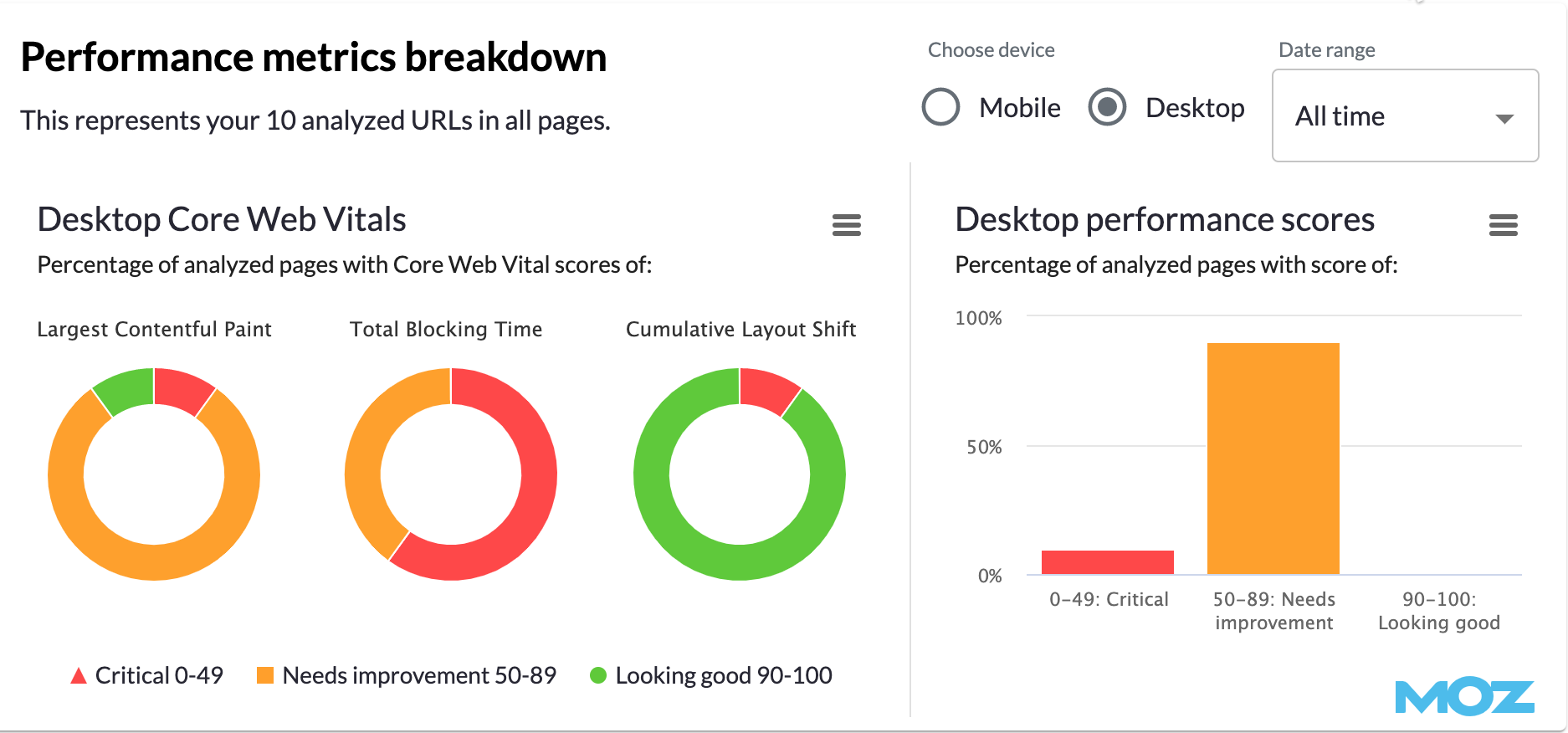If SEO practitioners are looking to explore their Core Web Vitals and start conversations with their developers, they can do that through the Moz Pro interface.