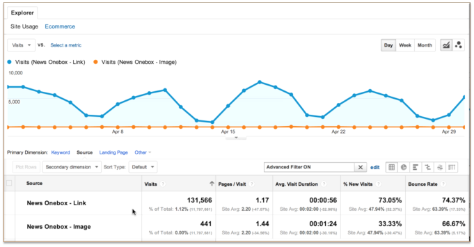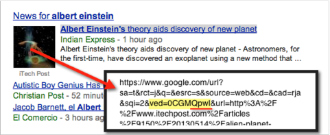 - Image optimization for Google News: The top link in the Google News OneBox is most often a different source than the image thumbnail. If ved = xxxxQqQIw ÷ ved = xxxxQpwI, or the ratio of links to images, is way off-kilter it suggests there is an image optimization issue. Publishers can then use this data to measure optimization efforts against a pre-established baseline.