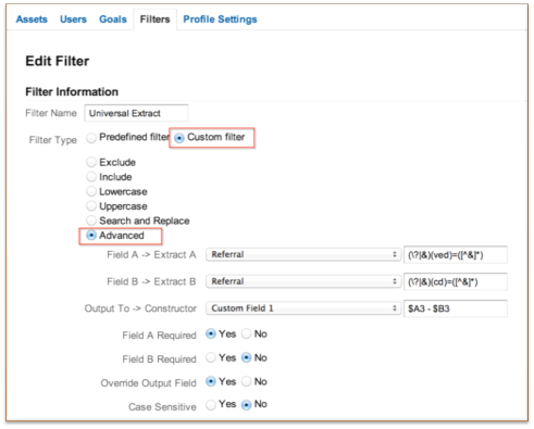 Next, you will need to set up two advanced filters; one to extract ‘ved’ and ‘cd’ from the Google referral string, and the other to display the data within Google Analytics.