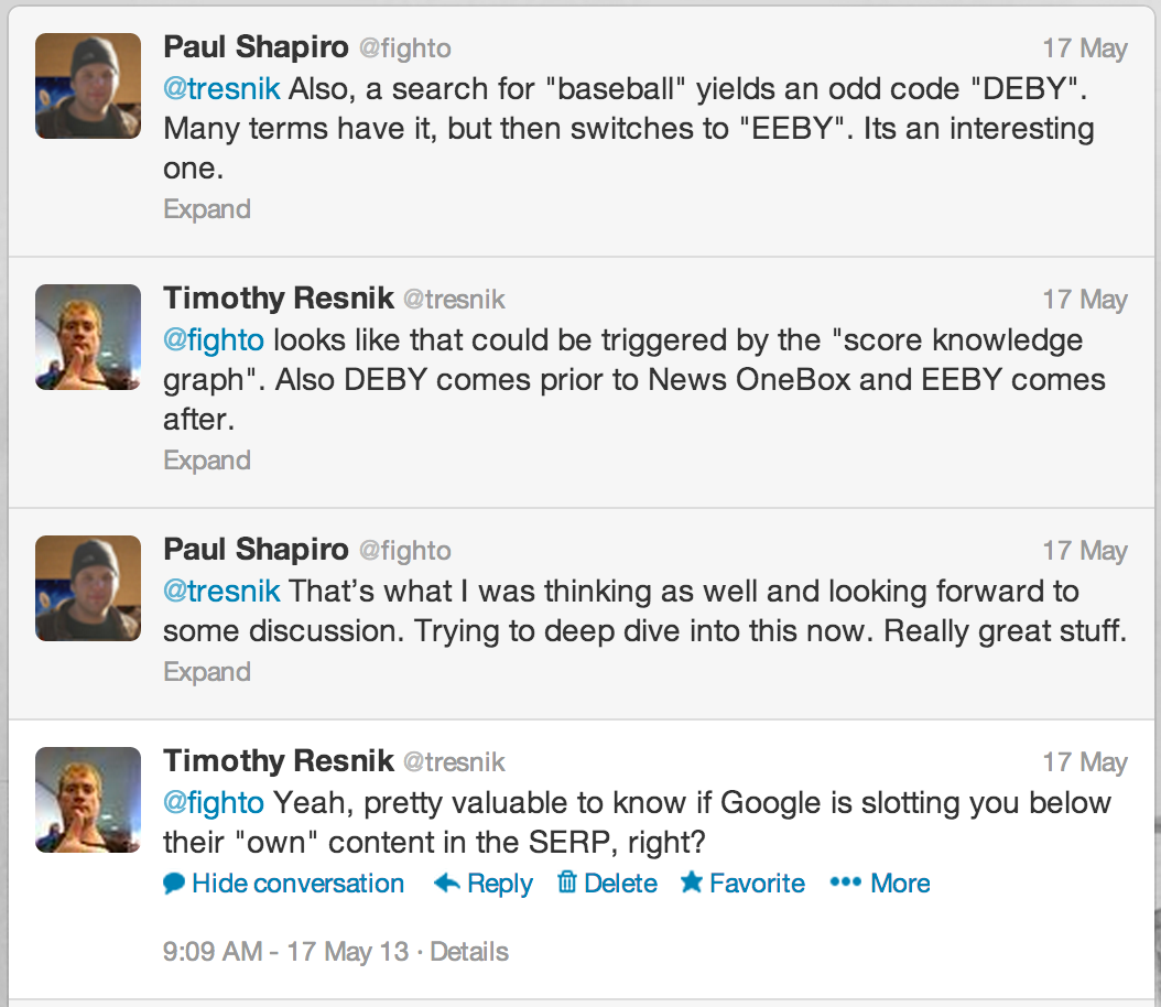 That about wraps it up for my first -- of hopefully many -- posts on ‘ved.’ In the months to come, Moz will be collecting Google referral string data on a great number of SERPs for various keywords. We plan to unleash our data hound to sniff out the most useful elements. In the meantime, I would like to use this post as a place for the hacking to begin and the sharing of your thoughts in the comments.