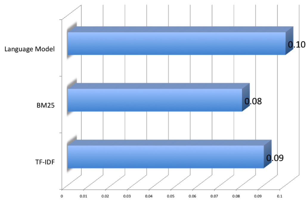 TF-IDF is one of the oldest and most well known approaches that represents each query and document as a vector and uses some variant of the cosine similarity as the scoring function. A language model encodes some information about the statistics of a language and includes knowledge such as the phrase "search engine optimization" is much more common then "search engine walking." Language models are used heavily in machine translation and speech recognition, among other applications. They are also extremely useful in information retrieval. Yet another class of models uses the probability ranking principle, which directly models the probability of relevance given the query and document. Of these, Okapi BM25 has been shown to be particularly effective.