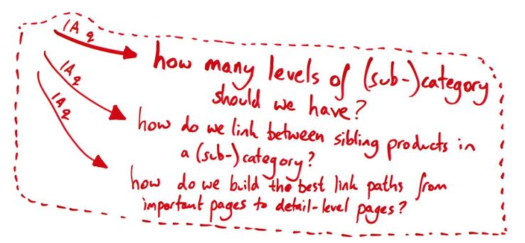 These are SEO information architecture questions, and the critical thing to realize is that you can make all of your information architecture decisions — which pages exist, which subcategories we're going to have indexed, how we link between sibling products, all of this linking stuff — we can make all these decisions, and then we can say, independently of whatever decisions we made, we can choose any of the URL structures we like for what those actual pages' paths are, what the URLs are for those pages.