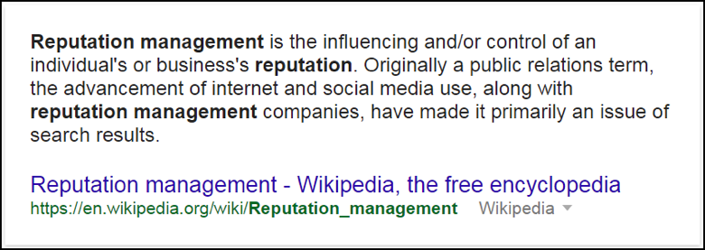 Marketers have long used the term reputation management to refer to a company’s efforts to impact what prospective customers see about them online. Here’s Wikipedia’s definition of that term: