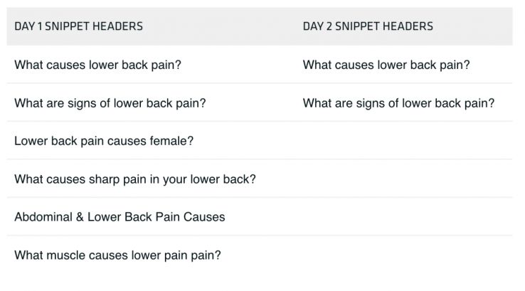 Here’s what we saw play out for the keyword [severe lower back pain]: