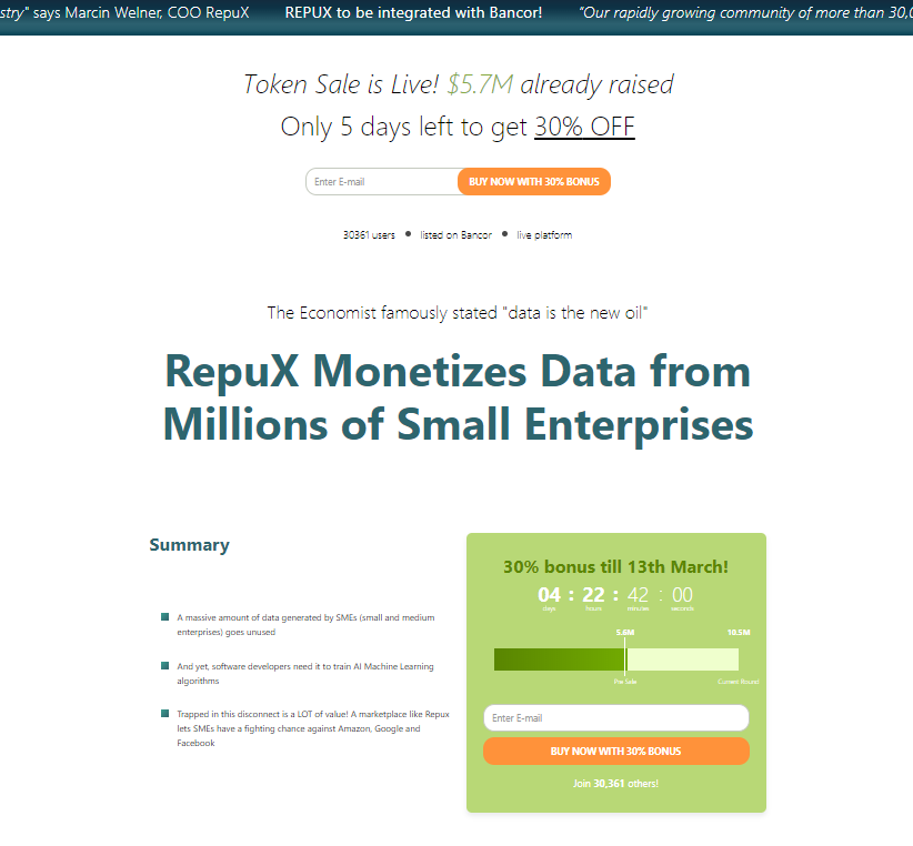 - Simplified the headline even further: “Repux Monetizes Data from Millions of Small Enterprises.” What was previously the headline is now stated in the bullet points.