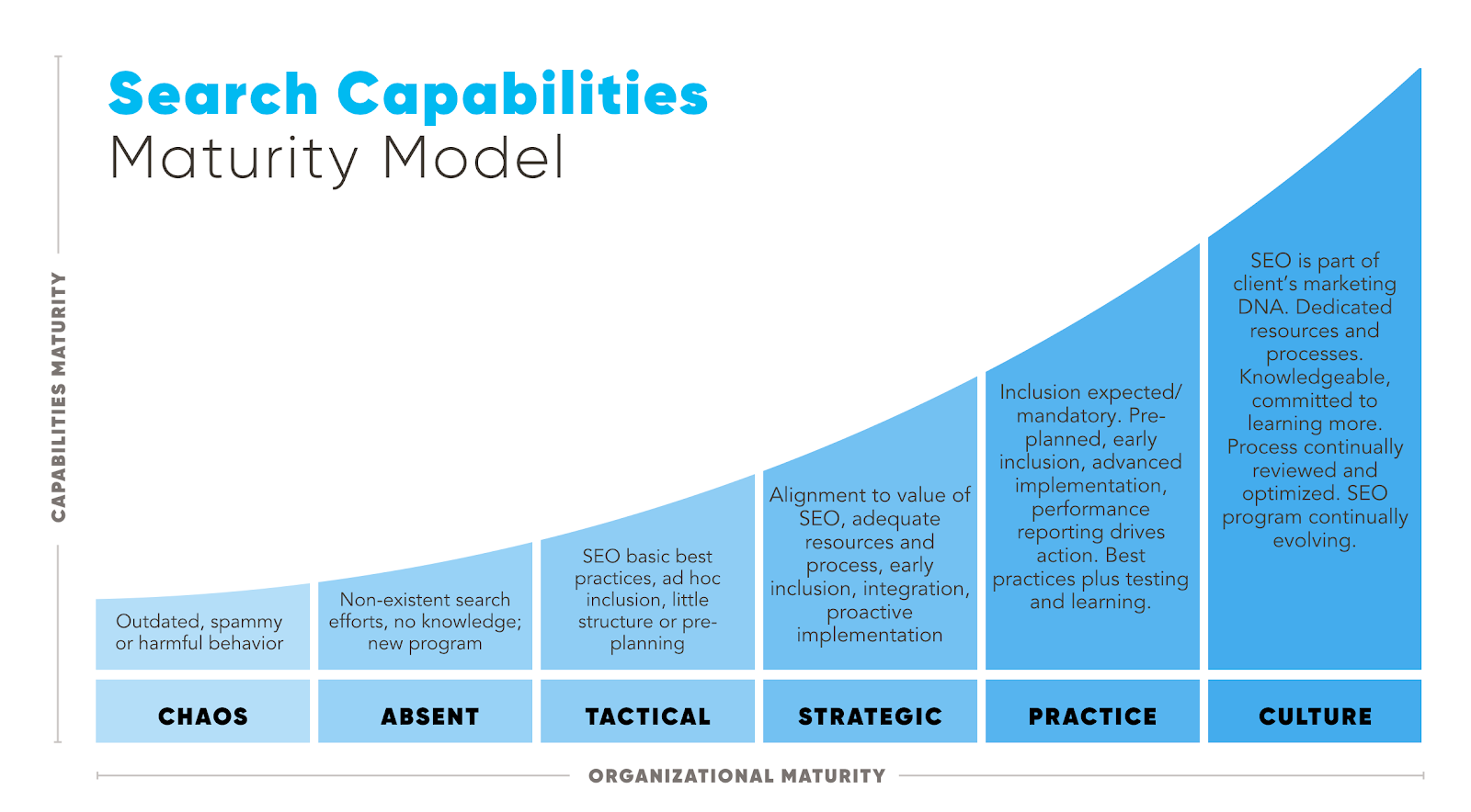 I recently wrote an in-depth article for the Moz blog about how to diagnose your client’s search maturity in both technical SEO capabilities and their organizational maturity as it pertains to a search program.