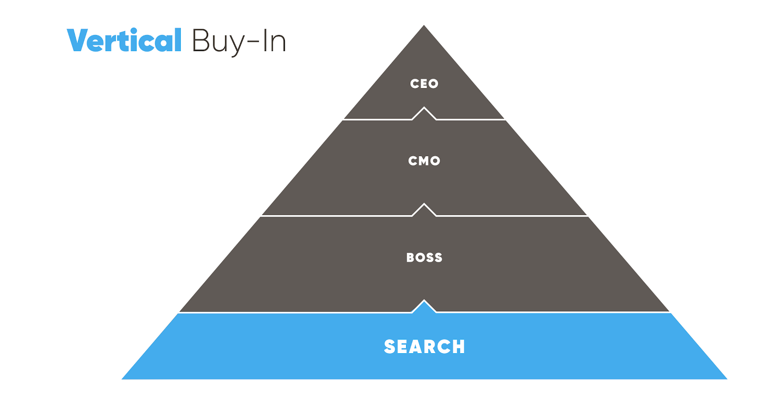 Tailor your educational content to busy CEOs and CMOs, not SEOs. Make the effort to listen to, read, write, and speak their corporate language. Their jargon is return on investment, earnings per share, operational costs. Yours is canonicalization, HTTPS and SSL encryption, 302 redirects, and 301 redirect chains.