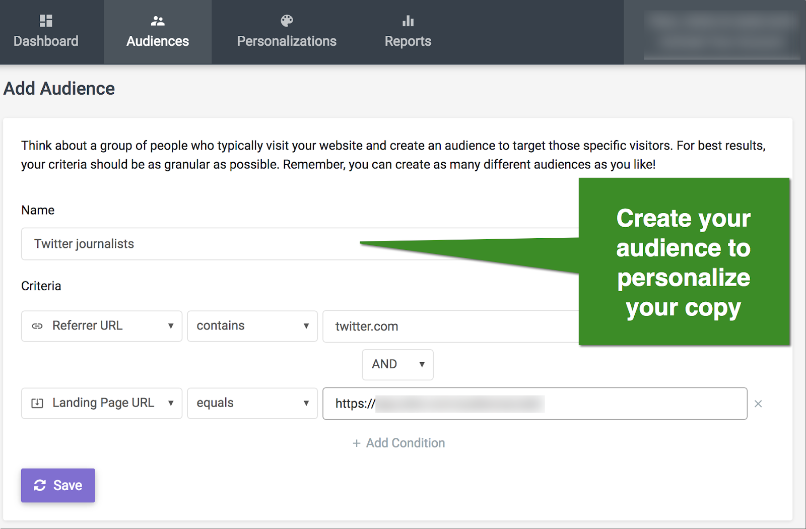 Since your link acquisition campaign includes both email and social media outreach, it is smart to customize your content asset based on the referral source to make sure your link building leads will see exactly what they came for above the fold.