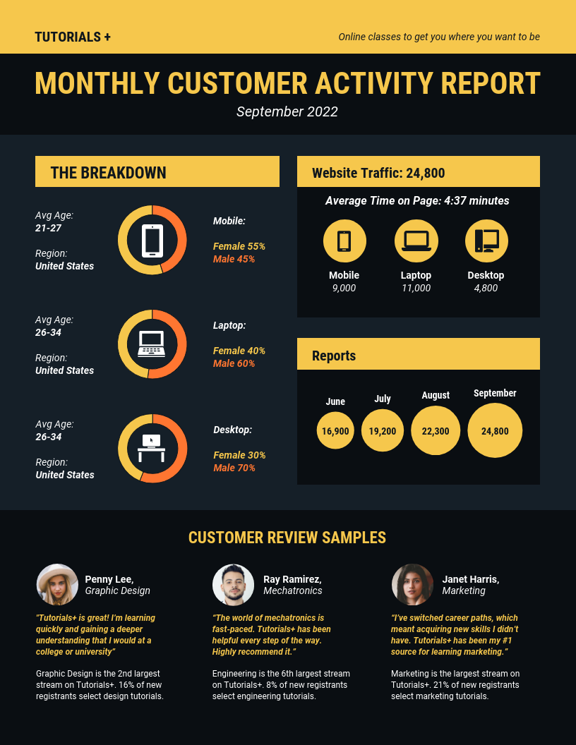 Once you've collated this information, you can design a customer traffic report that will help you adapt the direction of your marketing.
