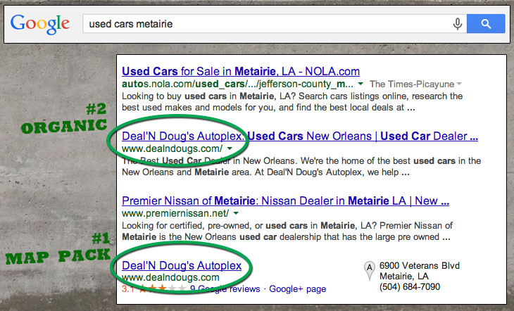 While they're not the silver bullet for rankings that they used to be, they're still an important signal for local relevancy. Here's may favorite example... We were hired to do the SEO for a car dealership just outside of New Orleans last fall. The dealer spent tons of money on radio and TV ads and was very well known in the local area, but he didn't understand why he wasn't showing up in local searches.