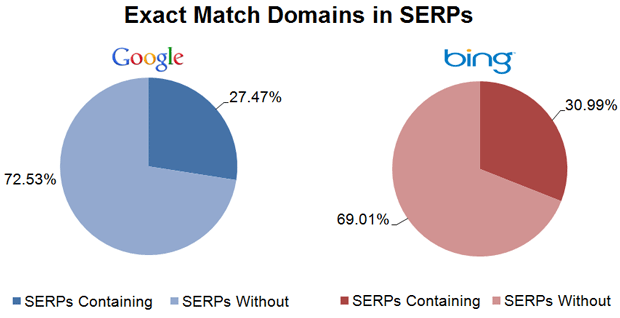 That's saying that more than 1/4 and nearly 1/3 SERPs contain an exact match domain in the top 10. The only thing more prominent?