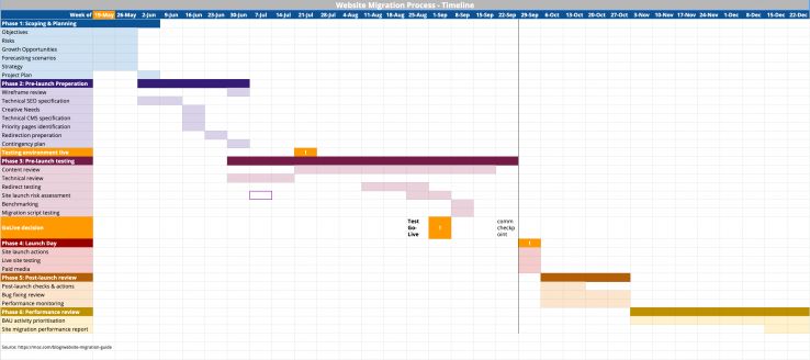 Tim outlined a six-phase project with specifications and definitions of our SEO strategy in a website migration document with an accompanying spreadsheet, complete with an RACI (responsible, accountable, consult, and inform) matrix and timeline. Tim’s plan was extremely clear, with positive outcome scenarios including possible growth as a result of the migration.
