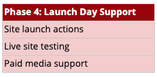Phase two ended when we started to move away from the specifications and into exactly what needed to happen, and when. We used our Go-Live Checklist to make sure that we had every box checked for creative needs, third party integrations, and to configure file review. Making the checklist highly detailed and accurate was the only way to make sure we succeeded.