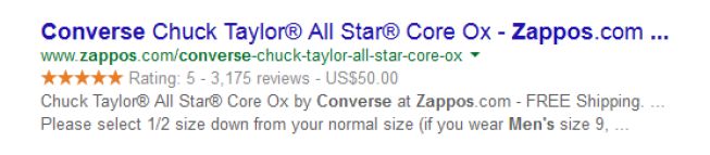 Schema mark-up can be used to add star ratings, number of reviews, pricing (all shown in the listing below) and more to a search results page listing.