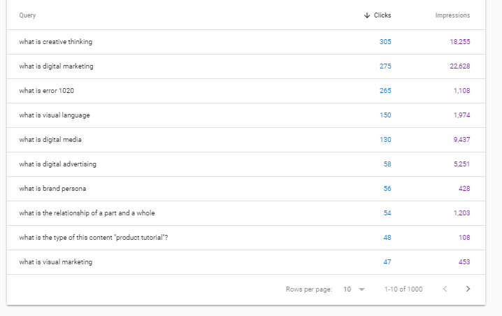 To find opportunities where there is less competition and greater focus on long tails, it’s necessary to access the "Performance" report, go to "Search results" and filter by "Queries" using expressions such as "what is", "concept", "definition" , “how to” among others.