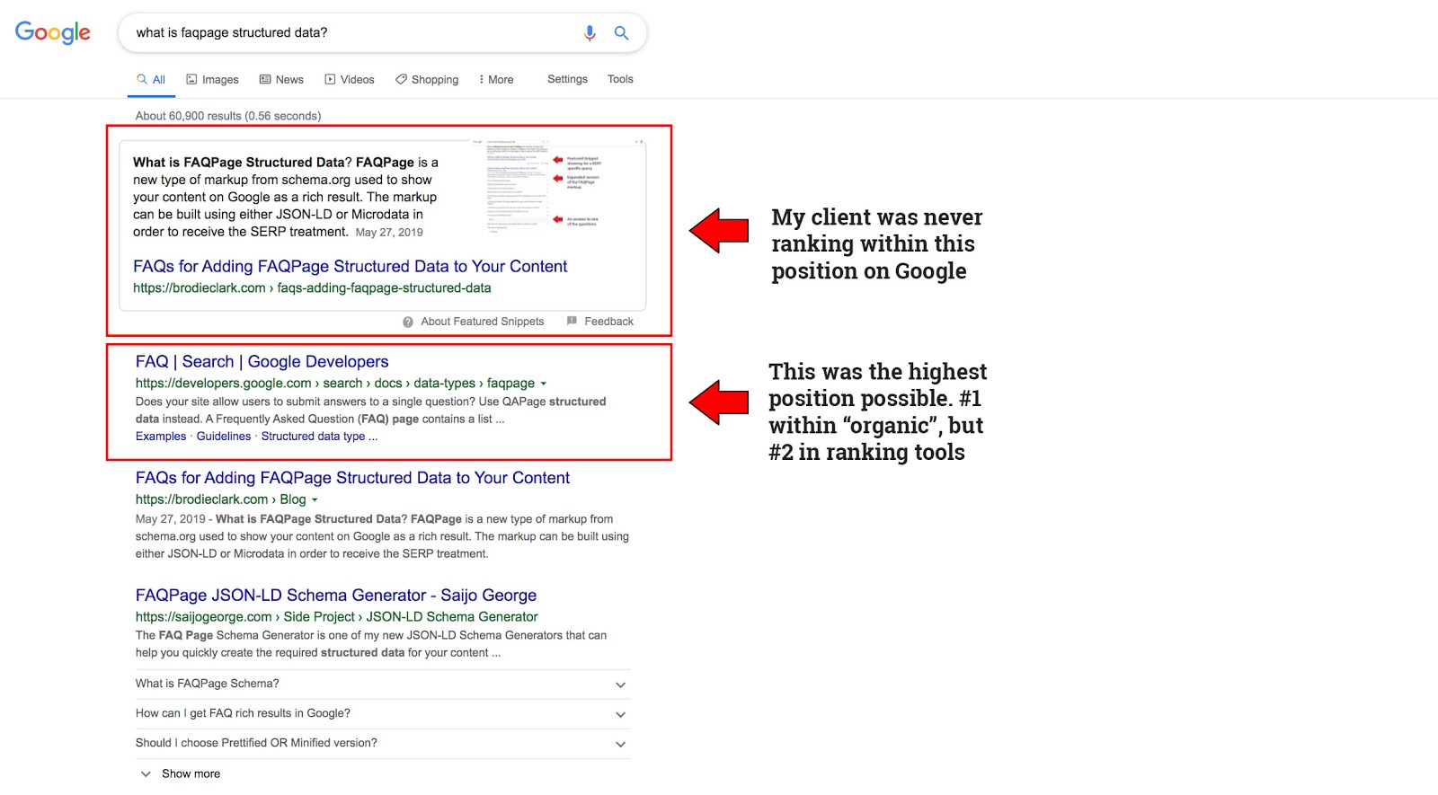 For me, this is a dirty little secret in a way (hence the title of this article). Google’s algorithms may decide that a site can’t show in a featured snippet (but could rank #2 consistently), and there's nothing a site owner can do.