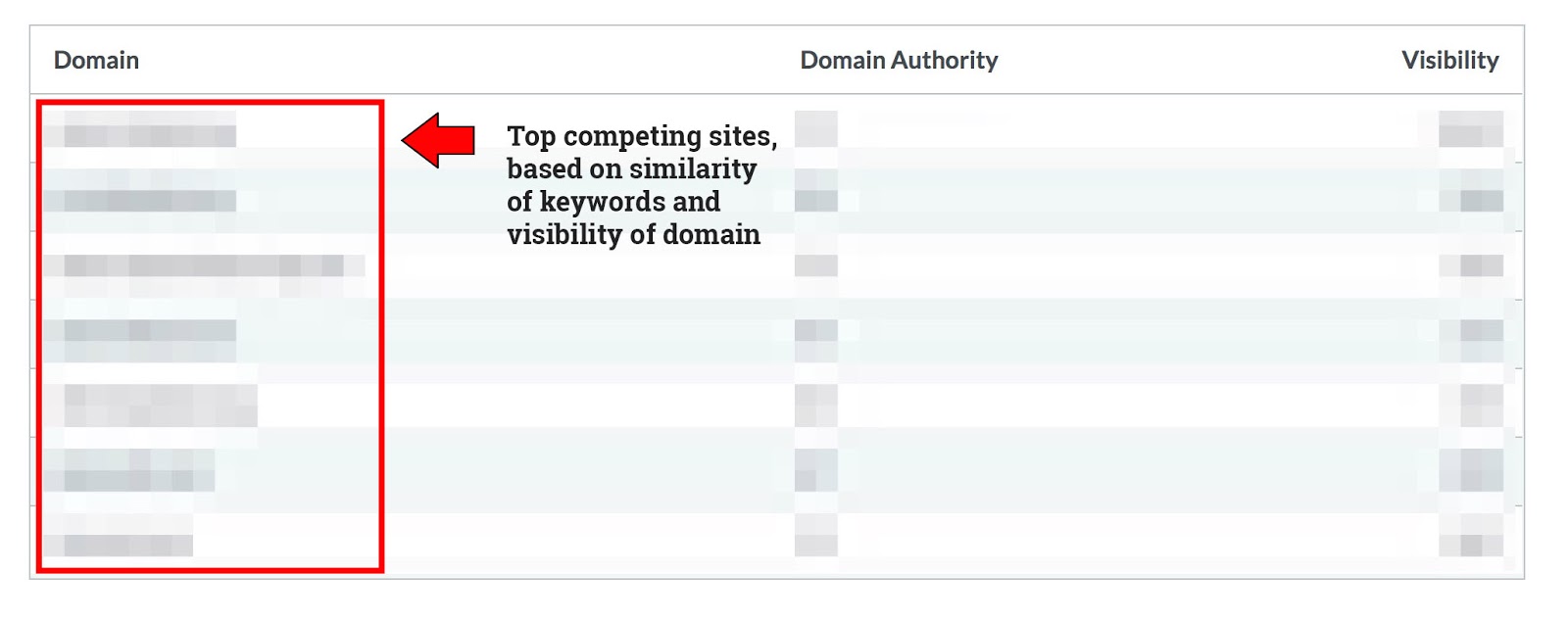 Again, we need to reflect back to our tools. We need our tools to figure out the top sites based on similarity of keywords. Here’s an example of this in action within the new Moz Domain Analysis tool: