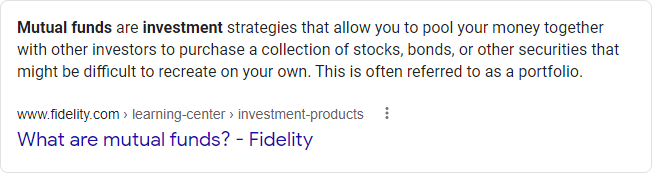 Consider, too, that some of these Featured Snippets may just have been redundant. Prior to February 19, someone searching for "mutual fund" might have seen this Featured Snippet: