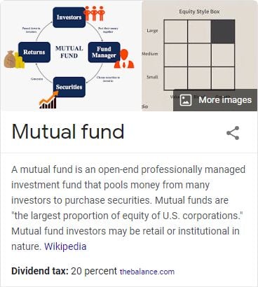 Google is assuming a "What is/are ...?" question here, but "mutual fund" is a highly ambiguous search that could have multiple intents. At the same time, Google was already showing a Knowledge Graph entity in the right-hand column (on desktop), presumably from trusted sources: